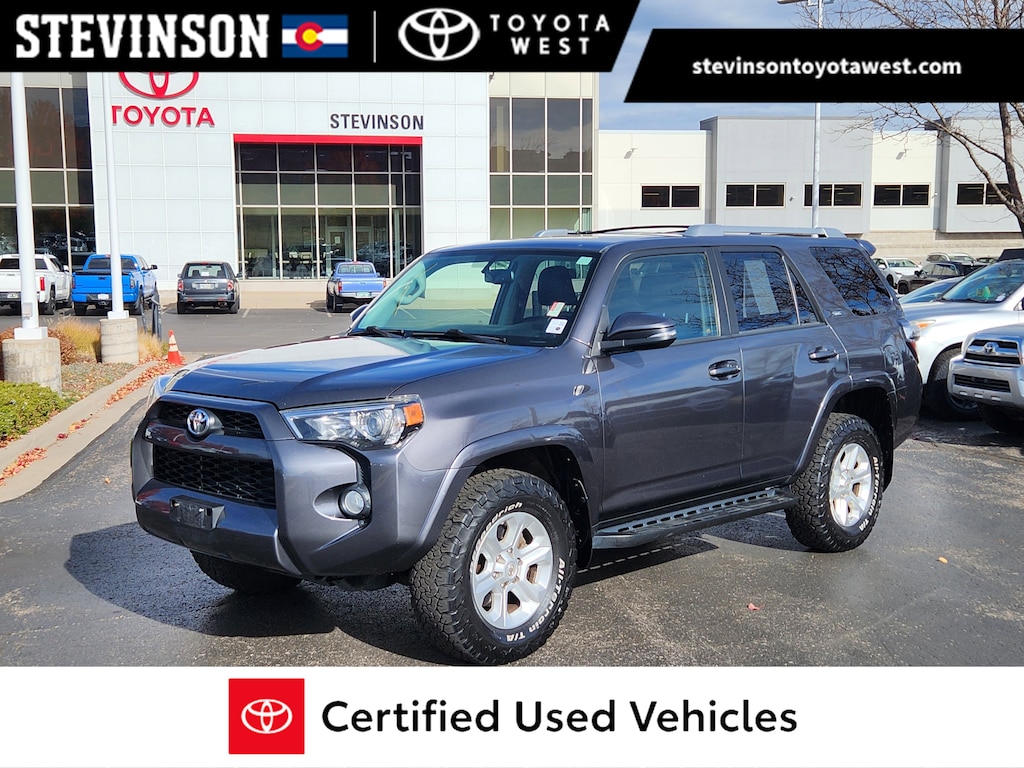 Magnetic Gray Metallic 2018 Toyota 4Runner SR5 Premium 4WD 5-Speed Automatic with Overdrive 4.0L V6 SMPI DOHC Stevinson Toyota West is offering this 2018 Toyota 4Runner SR5 Premium, in Magnetic Gray Metallic and Black Graphite Leather, Heated Seats, Rear Backup Camera, 4WD, Black Graphite w/Leather Seat Trim, 17 x 7.0 6-Spoke Alloy Wheels, ABS brakes, Alloy wheels, Auto-Dimming Rear-View Mirror, Body Color Heated Mirrors, Compass, Electronic Stability Control, Garage Door Opener, Heated door mirrors, Heated Front Bucket Seats, Heated front seats, Illuminated entry, Low tire pressure warning, Remote keyless entry, SR5 Premium Package w/Softex, Traction control.