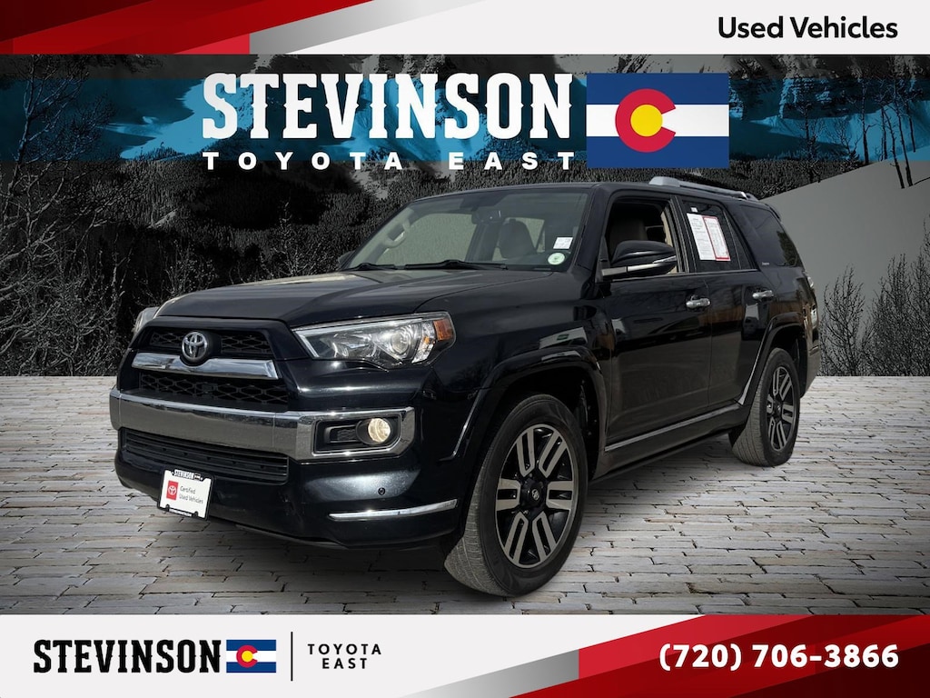 Stevinson Toyota East - STE is offering this 2019 Toyota 4Runner, Limited, in Midnight Black Metallic and Sand Beige Leather, only 85935 miles, Sunroof/Moonroof, Navigation/GPS/NAV, 3RD Row Seat, Heated Seats, Cooled Seat, Rear Back-Up Camera, Clean CarFax, Blue Tooth, Leather, Tow Package, Non-Smoker, 4WD, Sand Beige w/Softex Synthetic Leather Seat Trim, Auto-Dimming Rear-View Mirror, Body Color Heated Mirrors, Garage Door Opener, Limited Package, Moonroof w/Tilt Up & Slide, Navigation System, Right & Left Individual Air Conditioner, Silver Roof Rails.