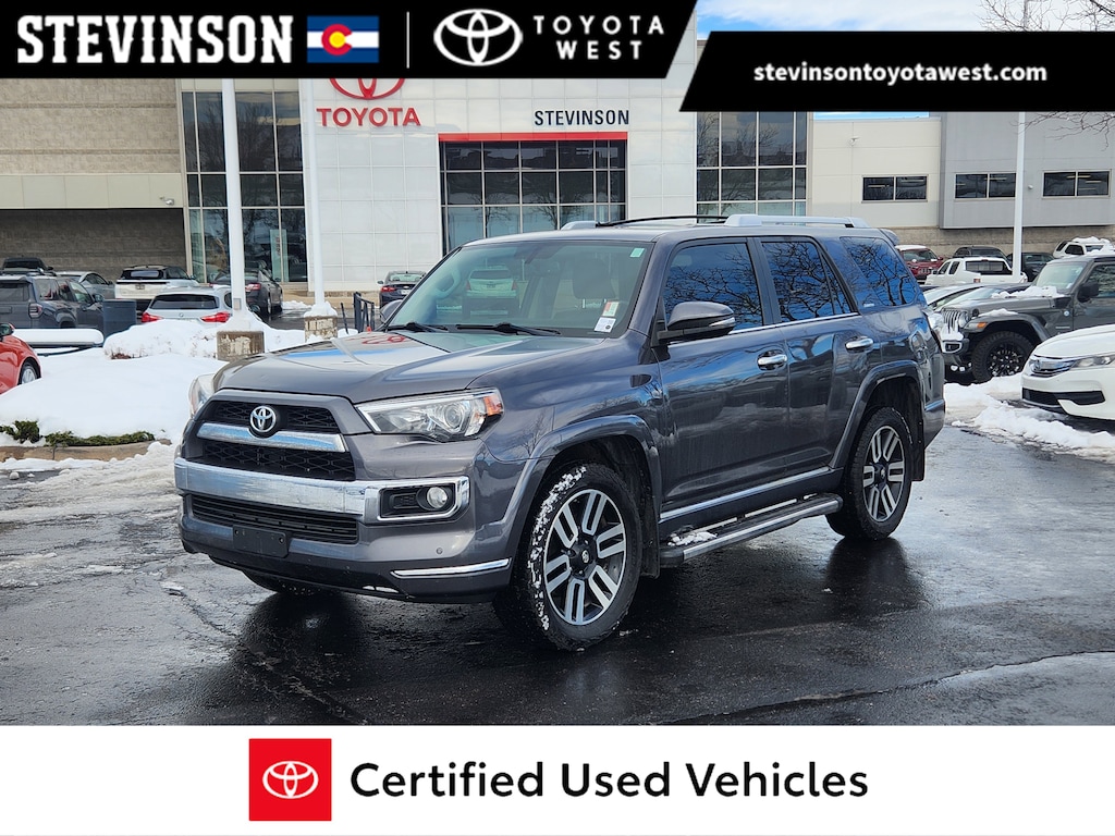 Magnetic Gray Metallic 2019 Toyota 4Runner Limited 4WD 5-Speed Automatic with Overdrive 4.0L V6 SMPI DOHC Stevinson Toyota West - STW is offering this 2019 Toyota 4Runner Limited, in Magnetic Gray Metallic and Black Graphite Leather, One Owner, Accident Free CarFax, Sunroof / Moonroof, Heated Seats, Navigation / GPS / NAV, Rear Backup Camera, Ventilated Seats, 4WD, Black Graphite w/Softex Synthetic Leather Seat Trim, 20 x 7.5 Unique Dual 6-Spoke Alloy Wheels, ABS brakes, Alloy wheels, Auto-Dimming Rear-View Mirror, Body Color Heated Mirrors, Compass, Electronic Stability Control, Front dual zone A/C, Garage Door Opener, Heated door mirrors, Heated front seats, Heated/Ventilated Front Bucket Seats, Illuminated entry, Leather Seat Trim, Limited Package, Low tire pressure warning, Moonroof w/Tilt Up & Slide, Power moonroof, Radio: Entune Premium JBL Audio w/Navigation, Remote keyless entry, Right & Left Individual Air Conditioner, Silver Roof Rails, Traction control.