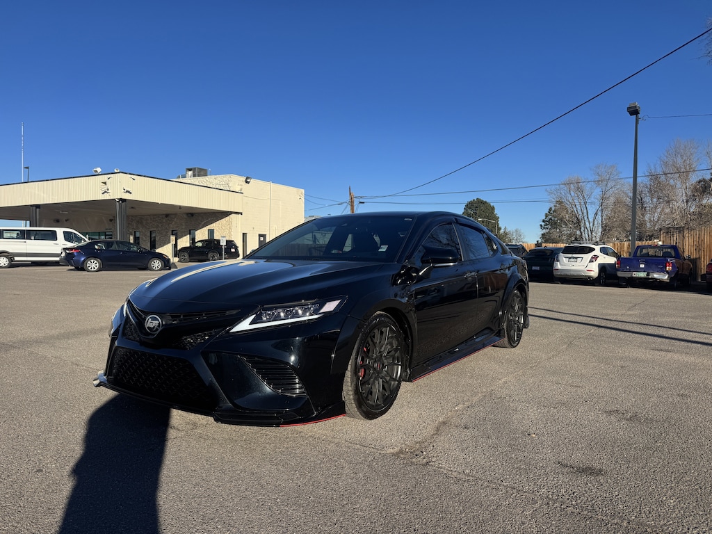 Stevinson Toyota East - STE is offering this 2022 Toyota Camry, TRD V6, in Black and Black Leather, only 39033 miles, Navigation/GPS/NAV, Heated Seats, Clean CarFax, Blue Tooth, Leather, Apple CarPlay, Android Auto, Black w/Perforated Leather Seat Trim, Radio: AM/FM/HD Premium Audio w/JBL w/Clari-Fi, TRD Boot Shift Lever & Knob, TRD Bumper, TRD LED Low Headlamp, TRD Luggage Door, TRD Package, TRD Package w/JBL Audio, TRD Rear Spoiler, TRD Wheel Cap Center Ornament.