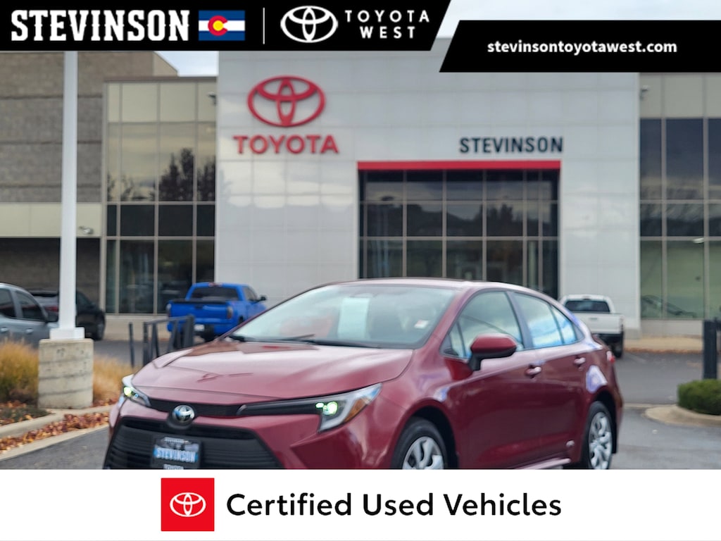 Ruby Flare Pearl 2026 Toyota Corolla Hybrid LE AWD eCVT 1.8L DOHC 16V VVT Stevinson Toyota West is offering this 2026 Toyota Corolla Hybrid LE, in Ruby Flare Pearl and Light Gray Cloth, low miles, only 730 miles, One Owner, Accident Free CarFax, Rear Backup Camera, Drivetrain: Electronic On-Demand All-Wheel Drive (AWD), 8-in. Toyota Audio Multimedia w/ 6-Speakers, Wireless Apple CarPlay and Android Auto Compatibility, Toyota Safety Sense 3.0 w/Pre-Collision, Blind Spot Monitor w/ Rear Cross-Traffic Alert, Toyota Safety Sense 3.0 (TSS 3.) Pre-Collision System with Pedestrian Detection (PCS w/PD), Lane Tracing Assist (LTA), Full-Speed Range Dynamic Radar Cruise Control (DRCC), Lane Departure Alert with Steering Assist (LDA w/SA), Automatic High Beams (AHB), Road Sign Assist (RSA), 1.8L DOHC 16V VVT, ABS brakes, Active Cruise Control, Electronic Stability Control, Illuminated entry, Low tire pressure warning, Remote keyless entry, Traction control.