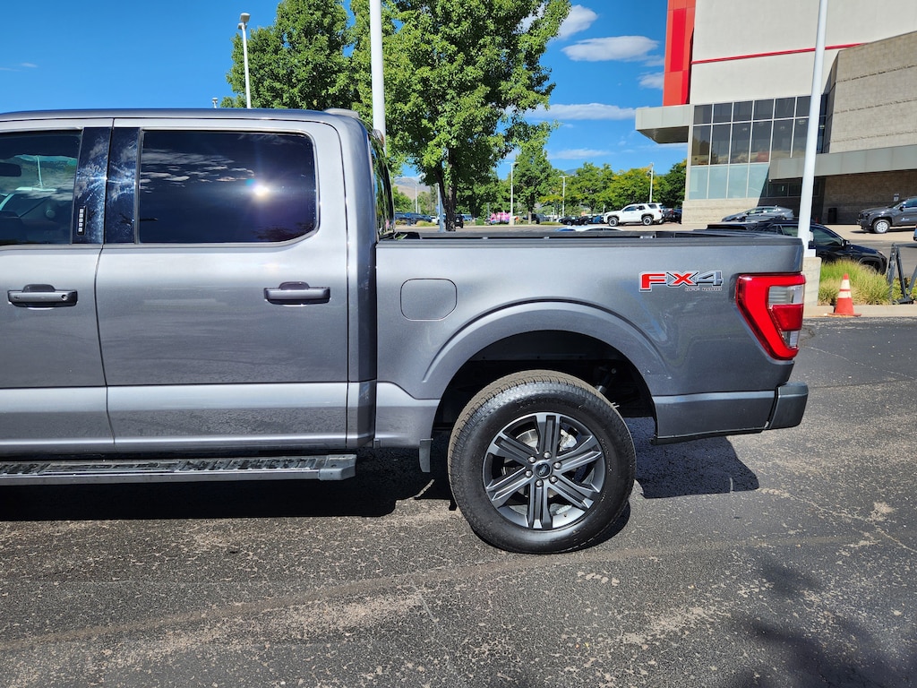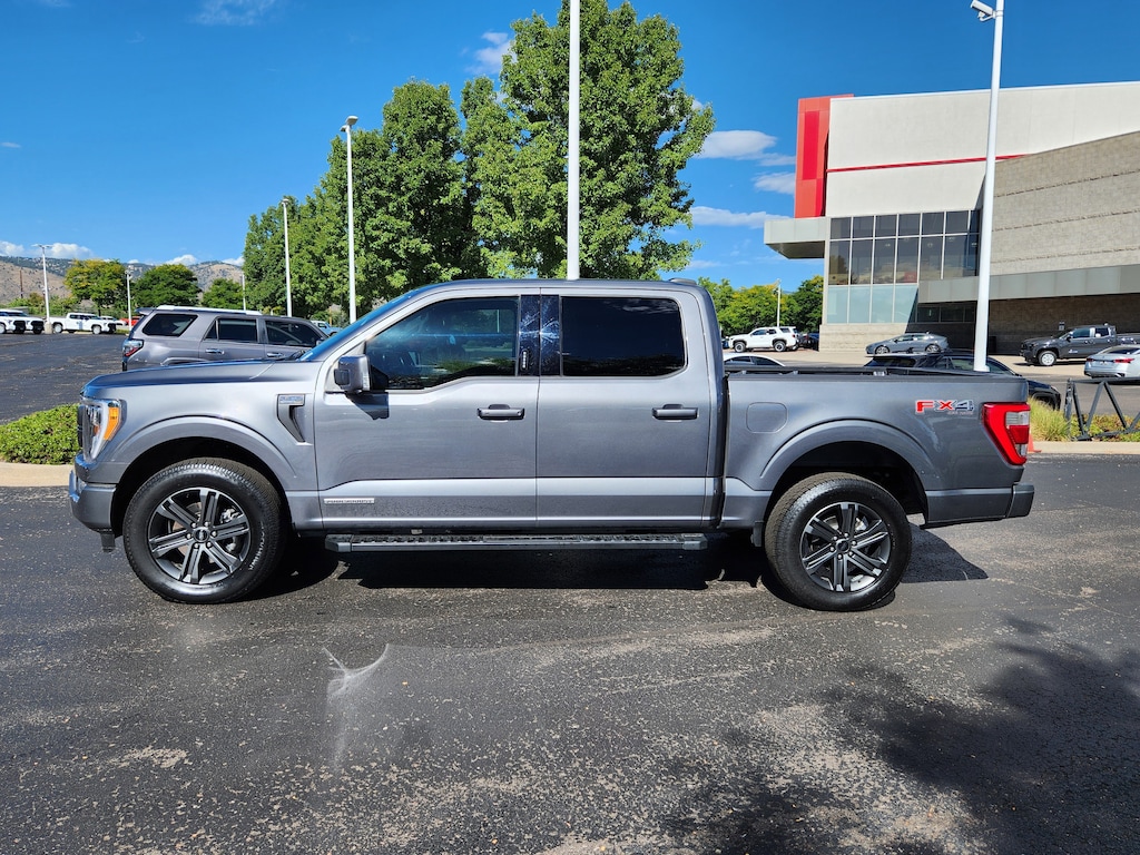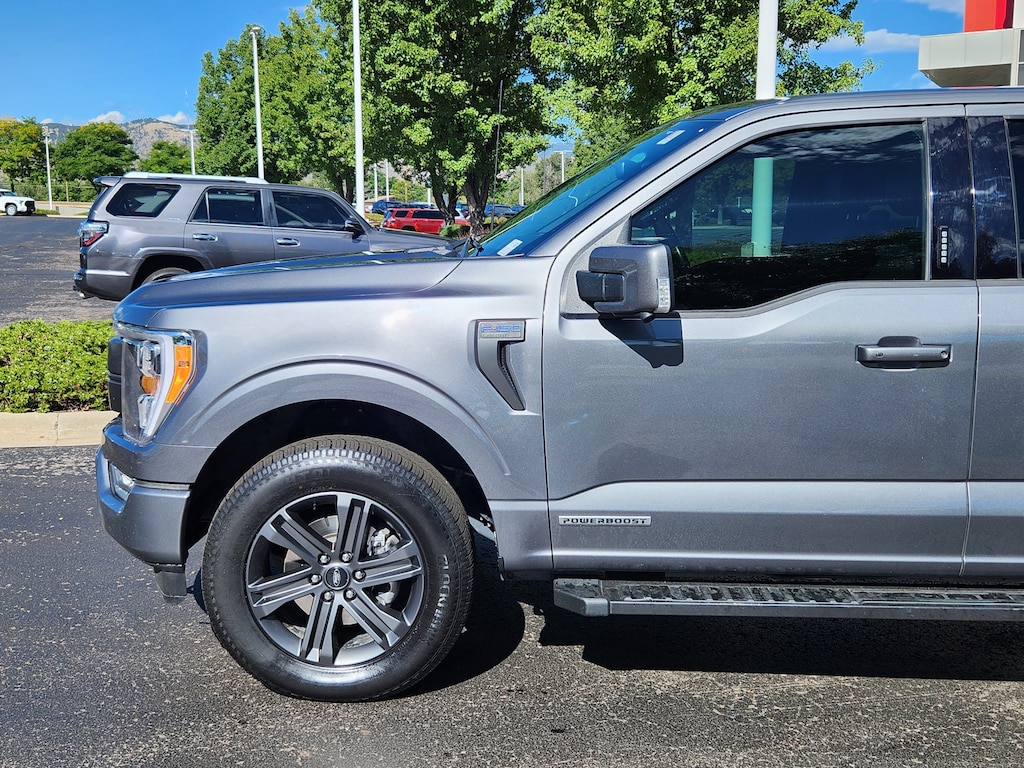 Bed Utility Package (BoxLink, LED Box Lighting, Power Tailgate, and Tailgate Step w/Tailgate Work Surface), Equipment Group 501A Standard, FX4 Off-Road Package, Lariat Sport Appearance Package (Accent-Color Angular Step Bars, Body-Color Front & Rear Bumpers, Box Side Decals, Chrome Single-Tip Exhaust, and Dark 2-Bar & 1 Minor Bar Style Grille), Trailer Tow Package (Class IV Trailer Hitch Receiver, Integrated Trailer Brake Controller, and Pro Trailer Backup Assist & Pro Trailer Hitch Assist), 3.5L PowerBoost Full-Hybrid V6, 4WD, 360 Degree Camera, 4-Wheel Disc Brakes, 8 Speakers, ABS brakes, Adjustable pedals, Air Conditioning, Alloy wheels, AM/FM radio: SiriusXM with 360L, Auto High-beam Headlights, Auto Start-Stop Removal (DISC), Auto-dimming door mirrors, Auto-dimming Rear-View mirror, Automatic temperature control, Brake assist, Bumpers: chrome, Center High-Mounted Stop Lamp CHMSL Camera Removal, Chrome wheels, Compass, Delay-off headlights, Driver door bin, Driver vanity mirror, Dual front impact airbags, Dual front side impact airbags, Electronic Stability Control, Emergency communication system: SYNC 4 911 Assist, Exterior Parking Camera Rear, Front anti-roll bar, Front Bucket Seats, Front Center Armrest, Front dual zone A/C, Front fog lights, Front reading lights, Front wheel independent suspension, Fully automatic headlights, Garage door transmitter, Heated door mirrors, Heated front seats, Heated steering wheel, Illuminated entry, Inclination/Intrusion Sensor Removal, Leather-Trimmed Bucket Seats, LED Sideview Mirror Spotlights, Low tire pressure warning, Memory seat, Occupant sensing airbag, Outside temperature display, Overhead airbag, Overhead console, Panic alarm, Passenger door bin, Passenger vanity mirror, Pedal memory, Power door mirrors, Power driver seat, Power passenger seat, Power steering, Power windows, Pro Power Onboard - 7.2KW, Radio data system, Radio: B&O Sound System by Bang & Olufsen, Rear reading lights, Rear seat center armrest, Rear step bumper, Rear window defroster, Remote keyless entry, Security system, Speed control, Speed-sensing steering, Split folding rear seat, Steering Wheel Heat Removal (DISC), Steering wheel mounted audio controls, SYNC 4 w/Enhanced Voice Recognition, Tachometer, Telescoping steering wheel, Tilt steering wheel, Traction control, Tray Style Floor Liner (47W), Trip computer, Turn signal indicator mirrors, Variably intermittent wipers, Ventilated front seats, Voltmeter, Wheels: 18 Chrome-Like PVD, Wheels: 20 6-Spoke Dark Alloy Painted Aluminum, and Wireless Charging Pad.