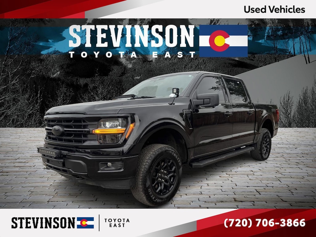 Stevinson Toyota East is offering this 2024 Ford F-150, XLT, in Black Metallic and Black Cloth, only 11299 miles, Rear Back-Up Camera, One Owner, Clean CarFax, Blue Tooth, Tow Package, Non-Smoker, Apple CarPlay, Android Auto, 4WD, 4x4 FX4 Off-Road Bodyside Decal, 6 Black Running Boards, Black Exterior Badging, Black Grille, Body-Color Front & Rear Bumpers, Dark Interior Appliques, Equipment Group 301A Standard, Floor Shifter, FX4 Off-Road Package, Gray Box Side Decal, GVWR: 6,650 lbs Payload Package, Hill Descent Control, Monotube Rear Shocks, Navigation system: Connected Navigation, Off-Road Tuned Front Shock Absorbers, Rock Crawl Mode, Tray Style Floor Liner, Unique Sport Cloth 40/Console/40 Front-Seats, Wheels: 18 Gloss Black, XLT Black Appearance Package.