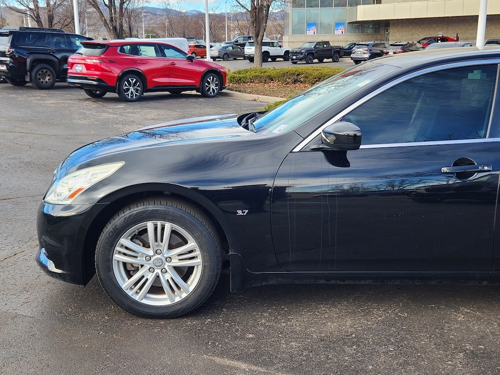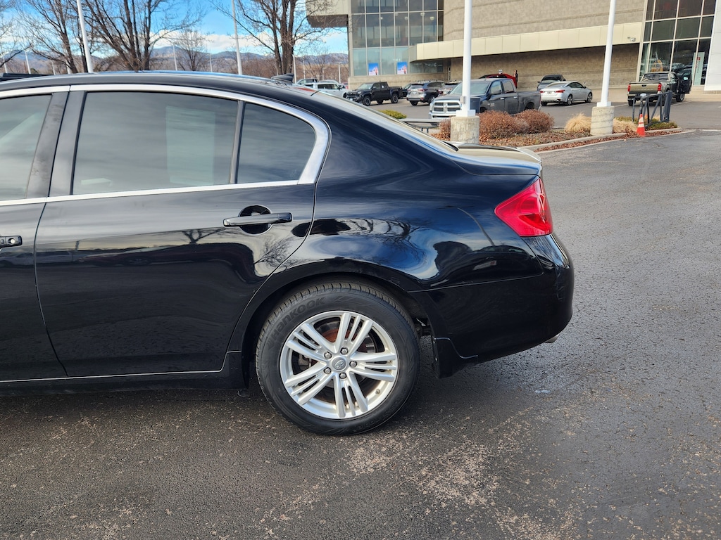 Moonroof Package, Navigation Package (Bluetooth® Advanced Audio Distribution Profile, INFINITI Hard Drive Navigation System, and Radio: INFINITI Studio On Wheels by BOSE), 17 Aluminum Alloy Wheels, 4-Wheel Disc Brakes, 6 Speakers, ABS brakes, Activation Disclaimer, Air Conditioning, Alloy wheels, AM/FM radio, AM/FM Single Disc CD, Anti-whiplash front head restraints, Auto-dimming Rear-View mirror, Automatic temperature control, Brake assist, Bumpers: body-color, CD player, Compass, Delay-off headlights, Driver door bin, Driver vanity mirror, Dual front impact airbags, Dual front side impact airbags, Electronic Stability Control, Four wheel independent suspension, Front anti-roll bar, Front Bucket Seats, Front Center Armrest, Front dual zone A/C, Front fog lights, Front reading lights, Fully automatic headlights, Garage door transmitter: HomeLink, Heated door mirrors, Heated Front Bucket Seats, Heated front seats, High intensity discharge headlights: Bi-Xenon, Illuminated entry, Illuminated Kick Plates, Leather Appointed Seats, Leather Shift Knob, Leather steering wheel, Literature Kit, Low tire pressure warning, Occupant sensing airbag, Outside temperature display, Overhead airbag, Overhead console, Panic alarm, Passenger door bin, Passenger vanity mirror, Power door mirrors, Power driver seat, Power passenger seat, Power steering, Power windows, Radio data system, Rear anti-roll bar, Rear reading lights, Rear seat center armrest, Rear window defroster, Remote keyless entry, Security system, Speed control, Speed-sensing steering, Speed-Sensitive Wipers, Splash Guards, Steering wheel mounted audio controls, Tachometer, Telescoping steering wheel, Tilt steering wheel, Traction control, Trip computer, Trunk Mat/Trunk Net/First Aid Kit, and Variably intermittent wipers.