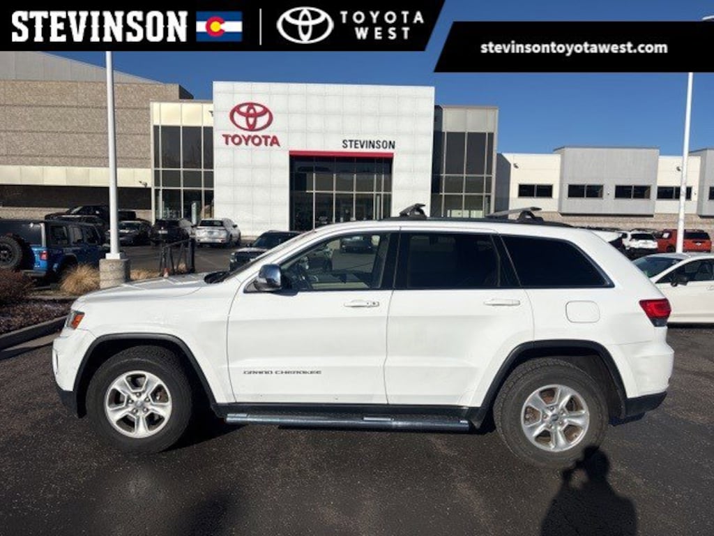 Bright White Clearcoat 2014 Jeep Grand Cherokee Laredo 4WD 8-Speed Automatic 3.6L V6 Flex Fuel 24V VVT Stevinson Toyota West - STW is offering this 2014 Jeep Grand Cherokee Laredo, in Bright White Clearcoat and Brown Leather, 4WD.