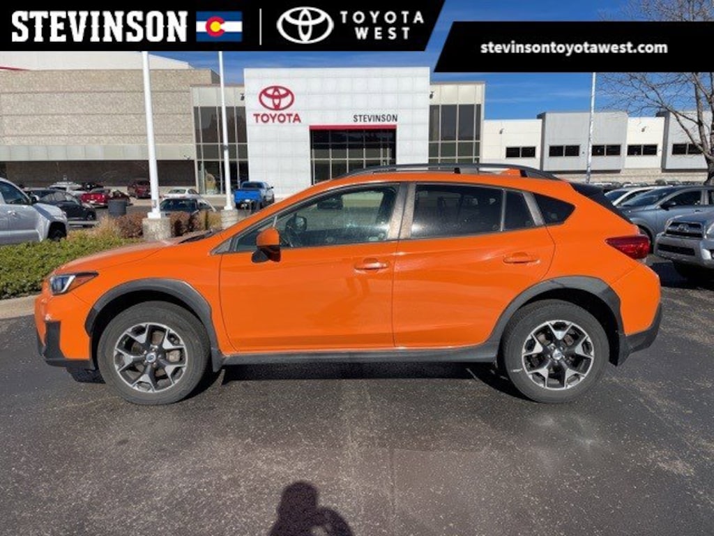 Orange 2018 Subaru Crosstrek 2.0i Premium AWD Lineartronic CVT 2.0L 16V DOHC Stevinson Toyota West is offering this 2018 Subaru Crosstrek 2.0i Premium, in Orange and Gray Cloth, One Owner, Accident Free CarFax, Sunroof / Moonroof, Rear Backup Camera, Apple CarPlay/Android Auto, Blind Spot Detection/Rear Cross Traffic Alert, EyeSight System, EyeSight System & Moonroof Package, Moonroof Package, Power Moonroof.