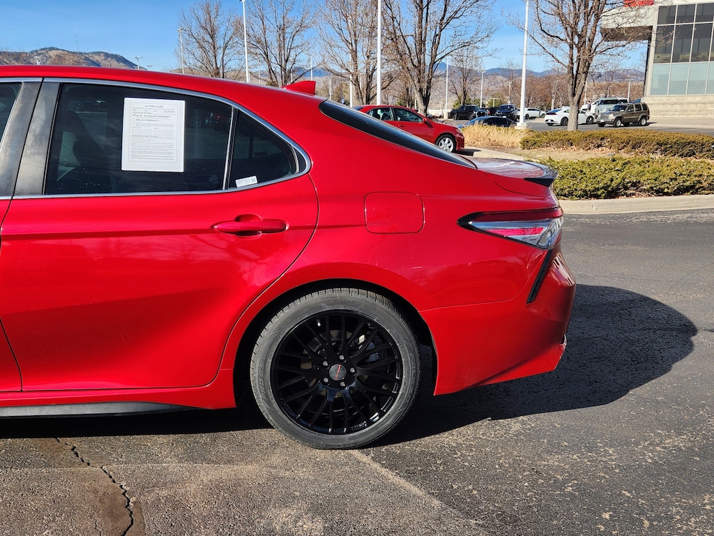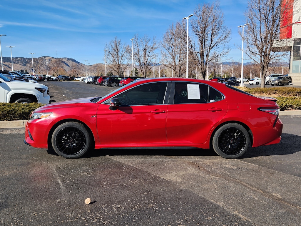 Ruby Flare Pearl 2019 Toyota Camry SE FWD 8-Speed Automatic 2.5L I4 DOHC 16V Black w/Fabric Seat Trim, ABS brakes, Active Cruise Control, Alloy wheels, Electronic Stability Control, Illuminated entry, Low tire pressure warning, Navigation System, Remote keyless entry, Traction control.