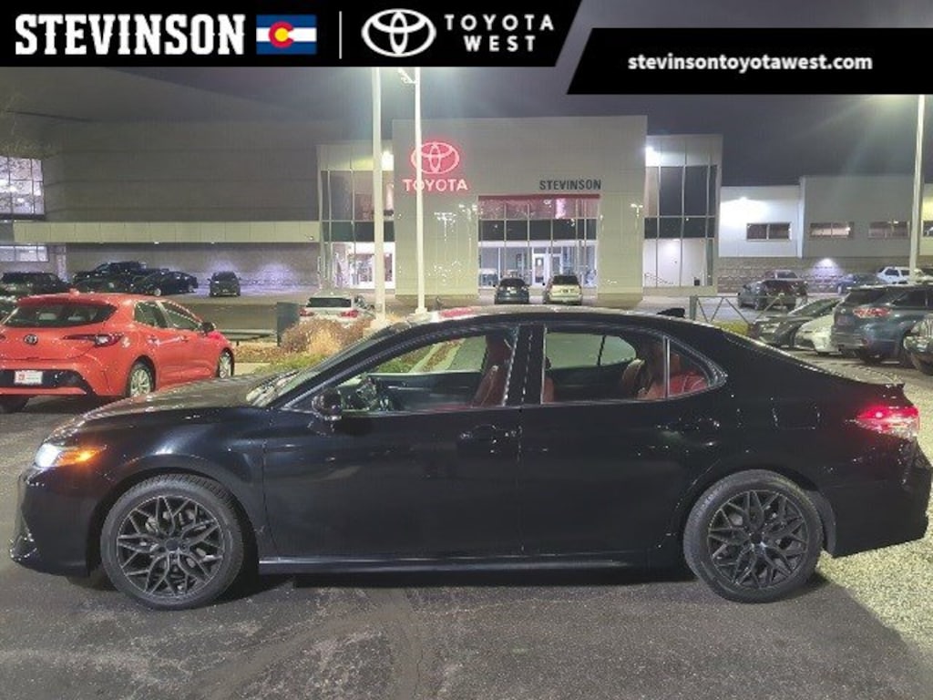 Midnight Black Metallic 2019 Toyota Camry XSE FWD 8-Speed Automatic 2.5L I4 DOHC 16V Stevinson Toyota West - STW is offering this 2019 Toyota Camry XSE, in Midnight Black Metallic and Cockpit Red Leather, Accident Free CarFax, Sunroof / Moonroof, Heated Seats, Navigation / GPS / NAV, Rear Backup Camera, Heated Steering Wheel, Cockpit Red w/Perforated Leather Seat Trim, Apple CarPlay, Panoramic Roof.