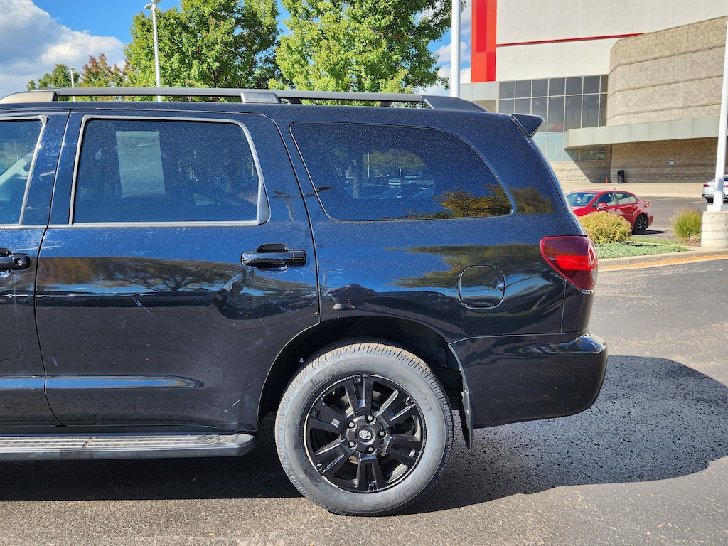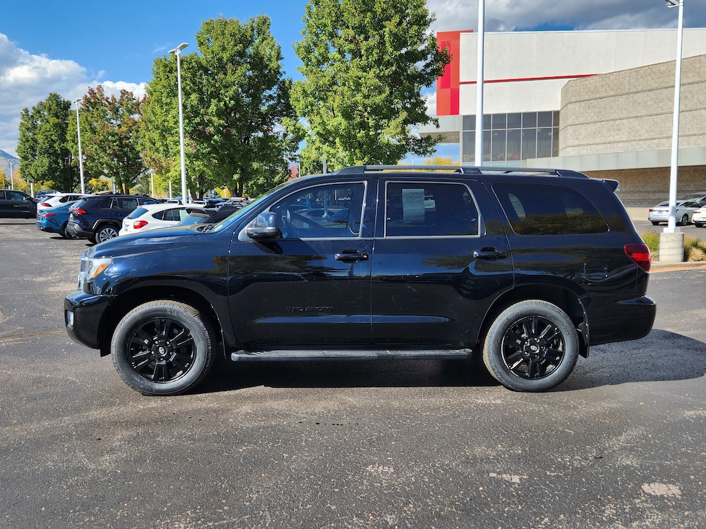 TRD Sport Grade Package, TRD Sport Premium Package (2nd Row Captains Seats, Auto-Dimming Rear-View Mirror, Compass, HomeLink Universal Transceiver, Leather Seat Trim, Radio: Premium Display Audio w/Nav & Entune, TRD Shift Knob, TRD Sport Badge, TRD Sport Door Sill, TRD Sport Floor Mats, TRD Sport Shocks, and TRD Sport Sway Bars), 6-Speed Automatic Electronic, 4WD, ABS brakes, Active Cruise Control, Alloy wheels, Electronic Stability Control, Front dual zone A/C, Heated door mirrors, Illuminated entry, Low tire pressure warning, Power moonroof, Remote keyless entry, Traction control, Wheels: 20 Aluminum, 3rd row seats: split-bench, 4-Wheel Disc Brakes, 4.30 Axle Ratio, 8 Speakers, Air Conditioning, AM/FM radio: SiriusXM, Auto High-beam Headlights, Automatic temperature control, Brake assist, Bumpers: body-color, CD player, Delay-off headlights, Distance pacing cruise control: Dynamic Radar Cruise Control (DRCC), Driver door bin, Driver vanity mirror, Dual front impact airbags, Dual front side impact airbags, Exterior Parking Camera Rear, Four wheel independent suspension, Front anti-roll bar, Front Bucket Seats, Front Center Armrest, Front fog lights, Front reading lights, Fully automatic headlights, Headlight cleaning, Knee airbag, Leather Shift Knob, Occupant sensing airbag, Outside temperature display, Overhead airbag, Overhead console, Panic alarm, Passenger door bin, Passenger vanity mirror, Power door mirrors, Power driver seat, Power steering, Power windows, Radio: Entune Audio Plus, Rear air conditioning, Rear anti-roll bar, Rear reading lights, Rear seat center armrest, Rear window defroster, Rear window wiper, Reclining 3rd row seat, Roof rack, Security system, Speed control, Speed-sensing steering, Split folding rear seat, Spoiler, Sport Fabric Seat Trim, Steering wheel mounted audio controls, Tachometer, Telescoping steering wheel, Tilt steering wheel, Trip computer, Variably intermittent wipers, and Voltmeter.