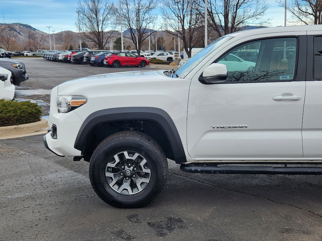 The exterior of this Tacoma is finished in a sleek and eye-catching White color, complemented by a host of premium features. The TRD Off-Road package adds black overfenders, wide-angle front fog lamps, and 16-inch machined contrast alloy wheels, giving the truck a bold and aggressive stance.