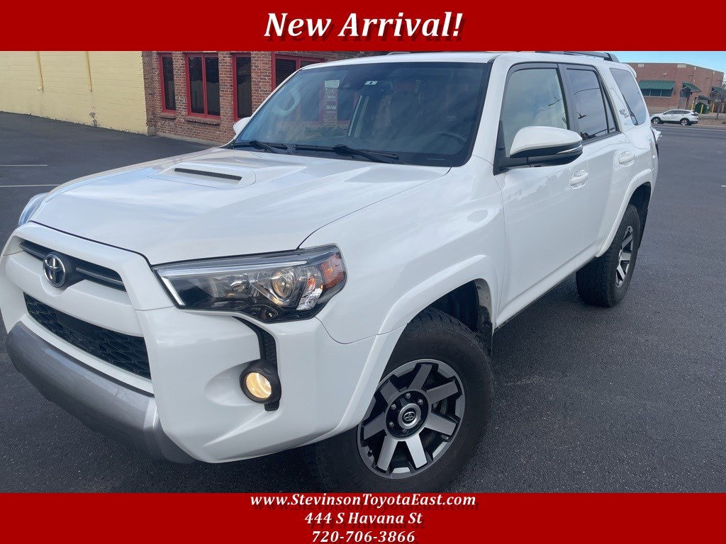 Stevinson Toyota East - STE is offering this 2020 Toyota 4Runner, TRD Off-Road Premium, in White and Black/Graphite Leather, only 61912 miles, Sunroof/Moonroof, Navigation/GPS/NAV, Heated Seats, Rear Back-Up Camera, Blue Tooth, Leather, Tow Package, Non-Smoker, Off Road Tires and Wheels!, Apple CarPlay, Android Auto, 4WD, Black/Graphite w/Softex Synthetic Leather Seat Trim, Active Cruise Control, Black Roof Rails, Body Color Heated Mirrors, Garage Door Opener, Moonroof Package, Moonroof w/Tilt Up & Slide, Off Road Package, Off Road Premium Package w/Softex, Wireless Smart Entry Door Lock.