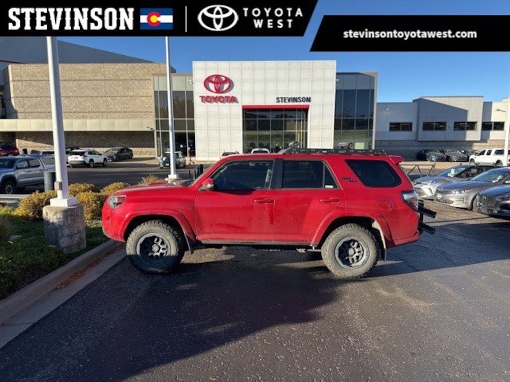 Barcelona Red Metallic 2020 Toyota 4Runner TRD Off-Road Premium 4WD 5-Speed Automatic with Overdrive 4.0L V6 SMPI DOHC Stevinson Toyota West is offering this 2020 Toyota 4Runner TRD Off-Road Premium, in Barcelona Red Metallic and Black/Graphite Leather, One Owner, Accident Free CarFax, Sunroof / Moonroof, Heated Seats, Navigation / GPS / NAV, Rear Backup Camera, 4WD, Black/Graphite w/Softex Synthetic Leather Seat Trim, Body Color Heated Mirrors, Garage Door Opener, Off Road Premium Package w/Softex, Wireless Smart Entry Door Lock.