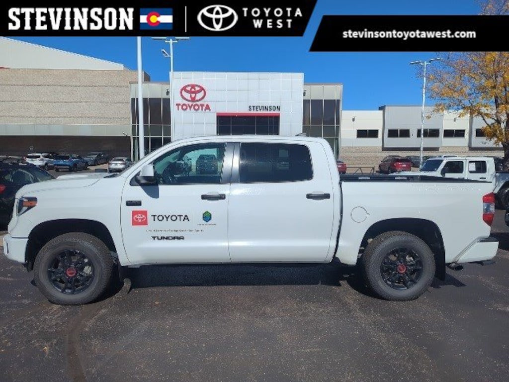 Super White 2021 Toyota Tundra TRD Pro 4WD 6-Speed Automatic Electronic i-Force 5.7L V8 DOHC 32V LEV 4WD, Black w/Leather Seat Trim, 38 Gallon Fuel Tank Capacity, ABS brakes, Active Cruise Control, Air Conditioning, All Weather Floor Liner, Alloy wheels, Anti-Theft Immobilizer w/Alarm, Auto-Dimming Rear-View Mirror, Black Wheel Locks, Color-Keyed Power Heated Exterior Mirrors, Compass, Deck Rail System, Electronic Stability Control, Front Door Smart Key System, Heated door mirrors, HomeLink Universal Transceiver, Illuminated entry, Low tire pressure warning, Power moonroof, Power Tilt & Slide Moonroof w/Sliding Sunshade, Power Windows w/Front Auto Up/Down, Push Button Starting System, Rear window defroster, Remote keyless entry, Rigid Industries LED Fog Lights, Traction control, TRD Pro Dual Exhaust, TRD Pro Package, TRD Pro Suspension.