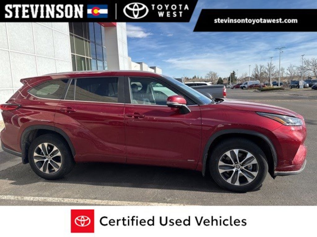 Toyota Gold Certified Certified, 2.5L I4 PDI Hybrid DOHC 16V LEV3-SULEV30, 18 Machined Alloy Wheels, 3rd row seats: split-bench, 4-Wheel Disc Brakes, 6 Speakers, ABS brakes, Air Conditioning, Alloy wheels, AM/FM radio: SiriusXM, Apple CarPlay/Android Auto, Auto High-beam Headlights, Auto-dimming Rear-View mirror, Automatic temperature control, Axle Ratio: TBD, Brake assist, Bumpers: body-color, Delay-off headlights, Driver door bin, Driver vanity mirror, Dual front impact airbags, Dual front side impact airbags, Electronic Stability Control, Emergency communication system: Safety Connect (up to 10-year trial subscription), Exterior Parking Camera Rear, Four wheel independent suspension, Front anti-roll bar, Front Bucket Seats, Front Center Armrest, Front dual zone A/C, Front fog lights, Front reading lights, Fully automatic headlights, Garage door transmitter: HomeLink, Heated door mirrors, Heated Front Bucket Seats, Heated front seats, Illuminated entry, Knee airbag, Leather Shift Knob, Leather steering wheel, Low tire pressure warning, Occupant sensing airbag, Outside temperature display, Overhead airbag, Overhead console, Panic alarm, Passenger door bin, Passenger vanity mirror, Power door mirrors, Power driver seat, Power Liftgate, Power moonroof, Power passenger seat, Power steering, Power windows, Radio: 8 Toyota Audio Multimedia, Rear air conditioning, Rear anti-roll bar, Rear reading lights, Rear window defroster, Rear window wiper, Reclining 3rd row seat, Remote keyless entry, Roof rack: rails only, Security system, SofTex Seat Trim, Speed control, Speed-sensing steering, Split folding rear seat, Spoiler, Steering wheel mounted audio controls, Telescoping steering wheel, Tilt steering wheel, Traction control, Trip computer, Turn signal indicator mirrors, and Variably intermittent wipers.