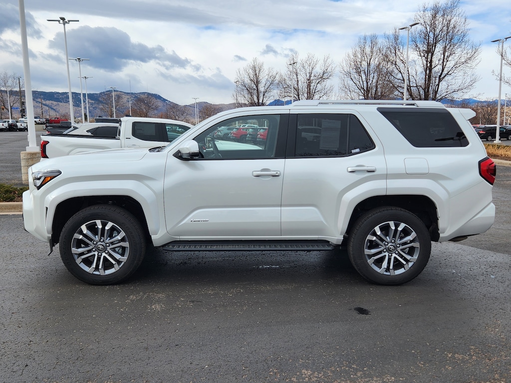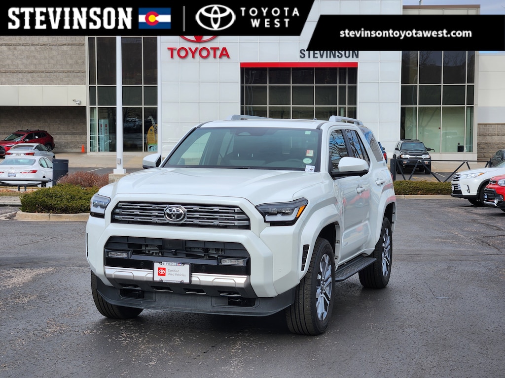 Wind Chill Pearl 2025 Toyota 4Runner Limited w/ 3rd Row Seating 4WD 8-Speed Automatic 2.4L 4-Cylinder Stevinson Toyota West - STW is offering this 2025 Toyota 4Runner Limited, in Wind Chill Pearl and Black Leather, low miles, only 3067 miles, One Owner, Accident Free CarFax, Sunroof / Moonroof, Heated Seats, Power Rear Liftgate, Rear Backup Camera, Ventilated Seats, Heated Steering Wheel, 4WD, Black w/Leather Seat Trim, Inside Rear-View Mirror, Limited, Tow Technology Package.
