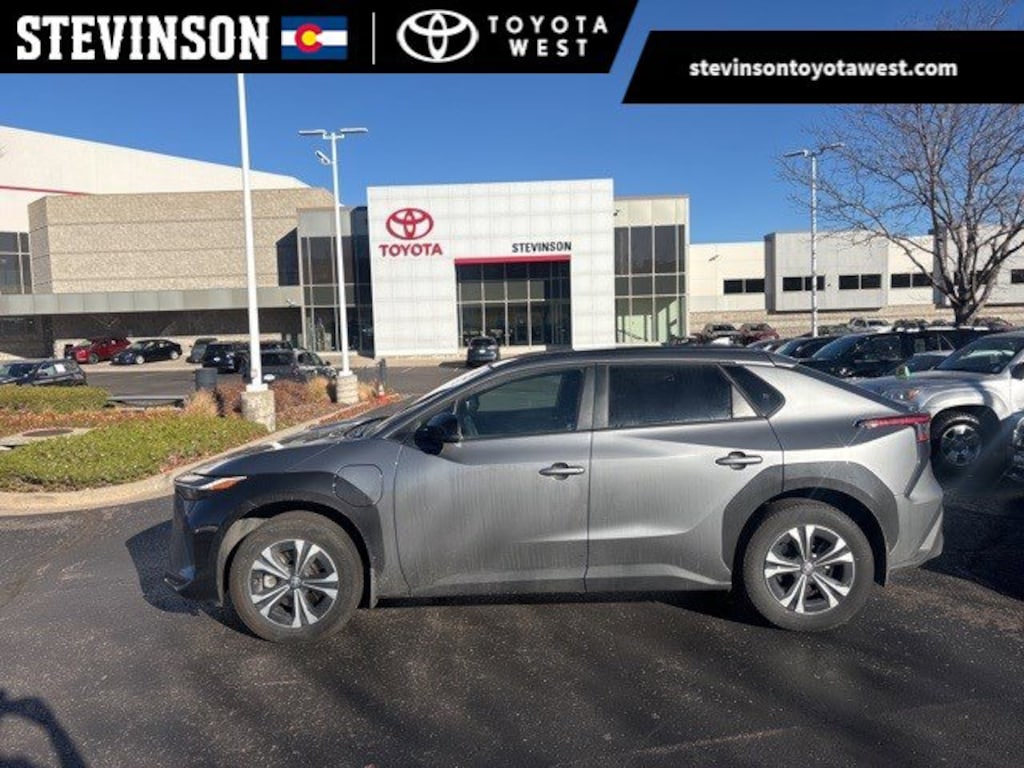 Heavy Metal 2025 Toyota bZ4X XLE AWD Single-Speed Automatic Electric Motor Stevinson Toyota West - STW is offering this 2025 Toyota bZ4X XLE, in Heavy Metal and Black Cloth, low miles, only 11429 miles, One Owner, Accident Free CarFax, Sunroof / Moonroof, Heated Seats, Power Rear Liftgate, Rear Backup Camera, Heated Steering Wheel, Heated Front Seats, Heated Leather-Trimmed Steering Wheel, Navigation system: Drive Connect (3 year trial) includes Cloud Navigation with real time traffic and Google POI, Radio: 12.3 Toyota Audio Multimedia w/6 Speakers, Weather Package.