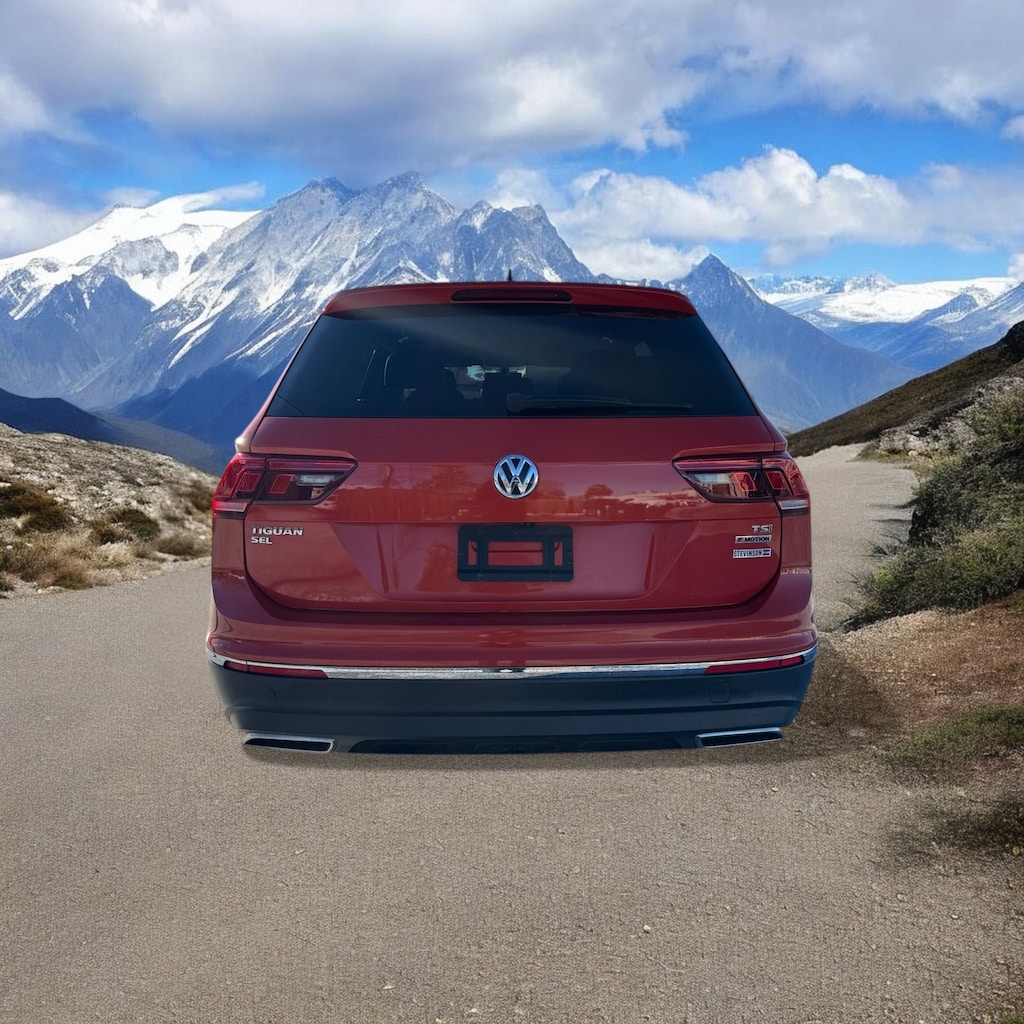 Stevinson Toyota East - STE is offering this 2018 Volkswagen Tiguan, 2.0T SEL, in Orange and Titan Black Leatherette, only 124531 miles, Sunroof/Moonroof, Navigation/GPS/NAV, 3RD Row Seat, Heated Seats, Rear Back-Up Camera, Clean CarFax, Power Lift Gate, Blue Tooth, Leather, Non-Smoker, AWD, 3rd Row Seat Package, Bumpers: body-color, Delay-off headlights, Fully automatic headlights, Panic alarm, Power door mirrors, Roof rack: rails only, Speed control.